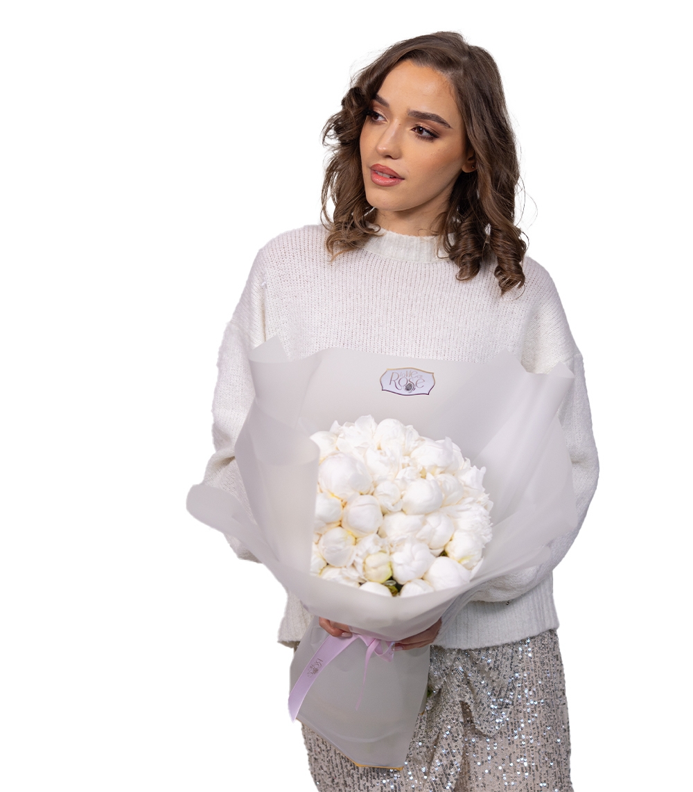 NOTE Bouquet of White Peonies: Flowers category, color, or shade may differ depending on stock availability.