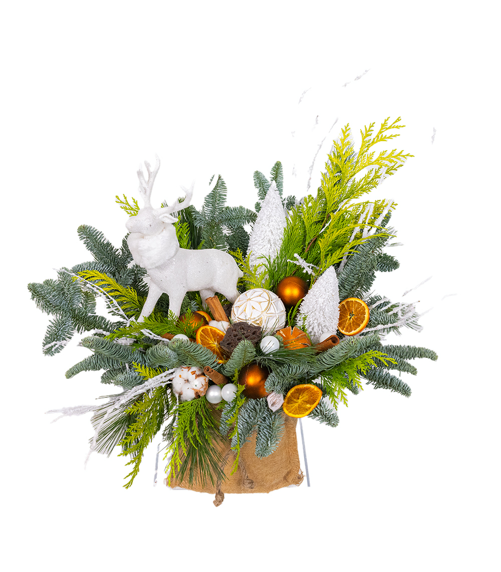Because we are interested in respecting the classic values of these ornaments for stylish products and to maximize their quality, we opted for a Christmas decorative arrangement containing fir, pine, white branches, winter accessories such as reindeer, globes or natural pine, which also have the scent of the season.