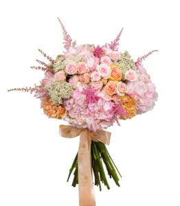 This pink bouquet of flowers is certainly a memorable romantic gesture. The dusty pink that prevails in this bouquet not only shows pure love but also reveals the elegance and sophistication of the person who opted for this special gift.