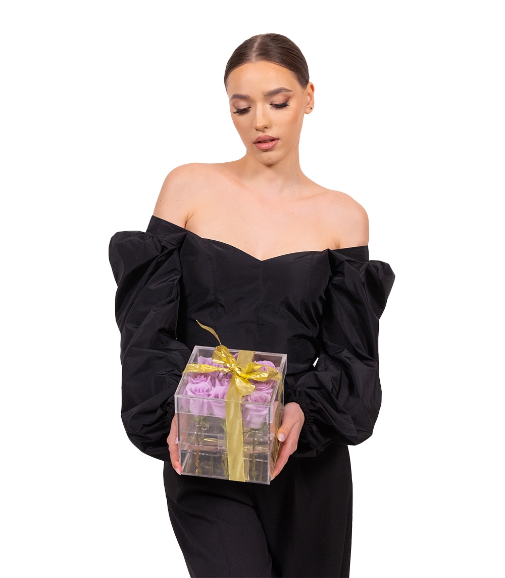 You guessed it, this factor is that roses don’t come in a bouquet, as is most often the case with floral gifts, but in a box. And not just any box, but in a special one designed to add to the premium feeling of attention that this unique gift already offers. Also worth mentioning here is the fact that the transparency of this box is not accidental – it’s an additional element of originality, which allows the gift to remain in the container in which it was received for a long time.